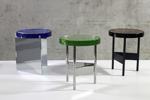 We wanted to create glass in a new way, something solid and unique. We are fascinated by casted glass, compared with mouth blown glass elements, which have a specific wall thickness, Alwa tables have a tabletop made of 50 mm casted glass. The liquid glass is left in a special metal mold to solidify for several days. The air bubbles in the glass give each tabletop a unique character. The appearance mimics the aesthetic of water. Alwa is a side table made of casted glass, balanced on a metal frame.
