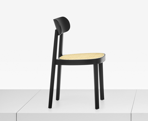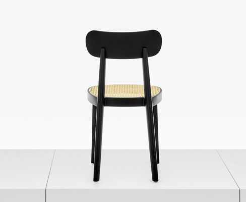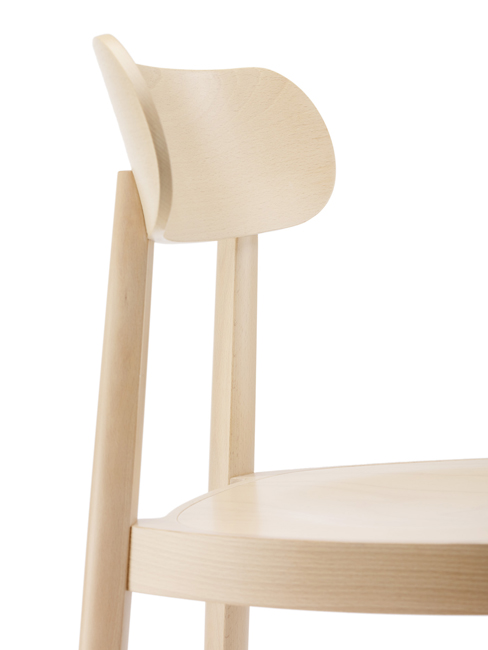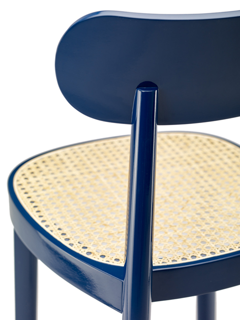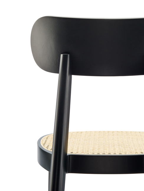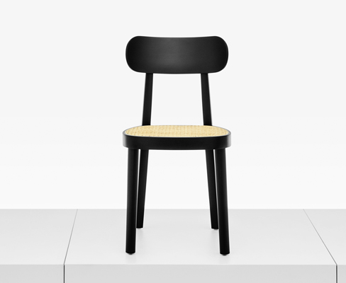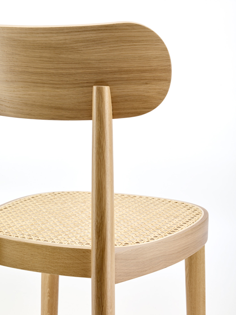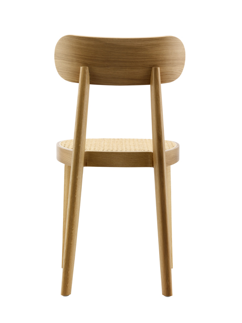 The new chair range 118 refers to the chair 214, the archetype of a Thonet chair, with the seat frame bent from a single piece and the wicker cane seat. Optionally, the 118 is offered with a moulded seat. The shape of the chair legs is another special feature: rounded on the back and characterised by slight edges on the front, they reference the horseshoe shape of the seat. The incline of the back panel is perfectly coordinated with the seat and ensures the highest seating comfort. The chair 118 is available in natural beech and in lacquered or stained versions.