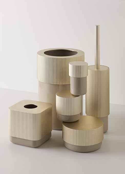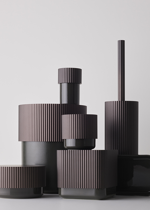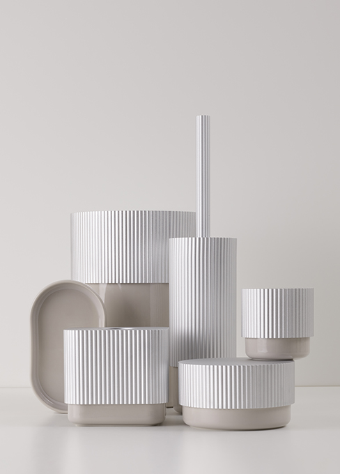 The new bathroom accessories of the OF.LINE collection for Decor Walther are characterised by an exciting mix of materials: a powerful combination of innovatively crafted solid aluminium and handmade porcelain. The cool, graphic structure of the aluminium is contrasted by warm porcelain tones. The OF.LINE collection brings a new element to Decor Walther's diverse portfolio, covering classic bathroom accessories such as soap dispensers and bowls, towel holders and toilet 2 brushes, as well as paper towel boxes, storage trays and storage boxes in various sizes, which are universally applicable in other areas.
